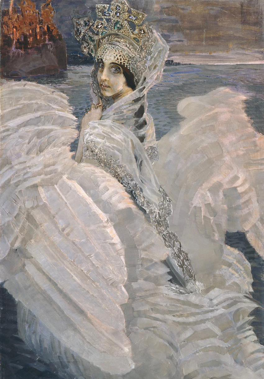 | "ЦАРЕВНА ЛЕБЕДЬ" - батик на холсте, пропись маслом, 60х50 см