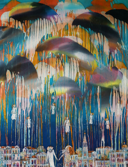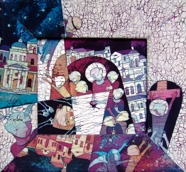 шелк, батик с выходом на раму,