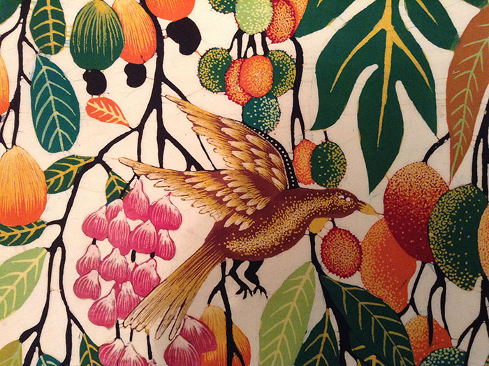 | "Птицa и фрукты" - шриланкийский батик, роспись расплавленным воском инструментами и кистями, 60х60 см - 8 часов |