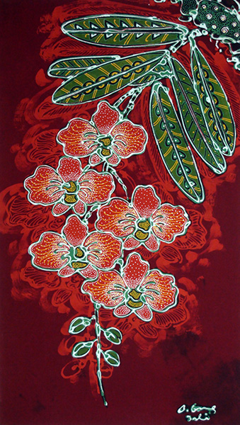| "Орхидеи" - Балийский батик, роспись расплавленным воском инструментами и кистями, 50х50 см - 4 часа. |